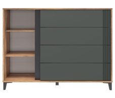 Комод "Богемия" изготовлен из высококачественных материалов. Корпус изготовлен из ламинированной древесностружечной плиты толщиной 16мм. Фасады выполнены из МДФ толщиной 19мм и покрыты пленками ПВХ с эффектом Soft touch. Это обеспечивает не только стильный внешний вид, но и приятные тактильные ощущения.
