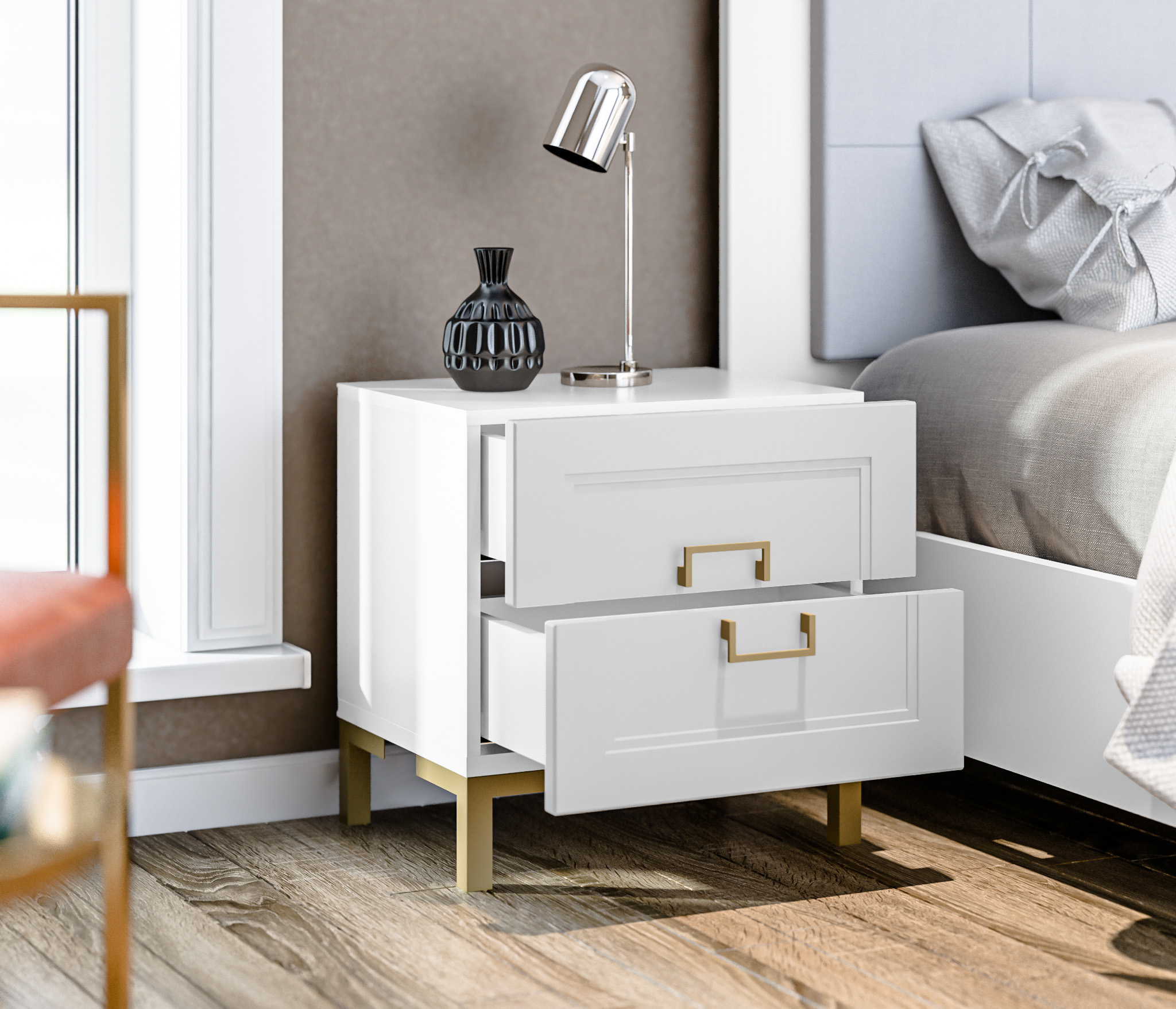 Мебель коллекции ассоль "Ассоль" имеет петли и направляющие с доводчиком, что придает легкость и плавность движения при открывании и закрывании, а также повышает уровень комфорта использования.