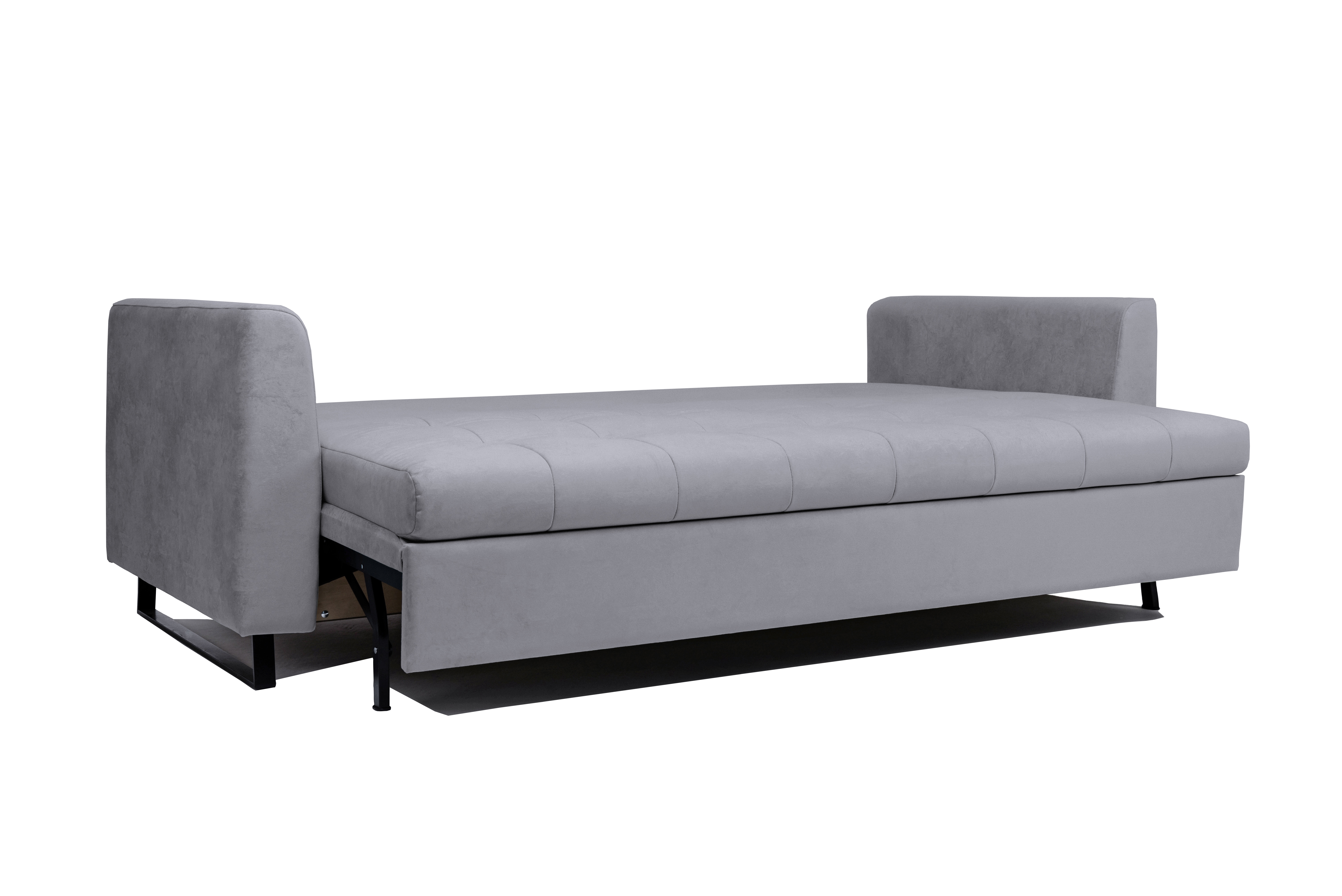 Механизм трансформации — шагающий (пантограф). Что позволяет использовать этот диван вместе с высокими коврами, и значительно упрощает раскладывание.