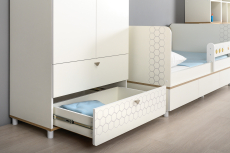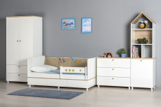 Детский шкаф Эйп станет функциональным элементом комнаты с интерьером в скандинавском стиле. Внутреннее наполнение включает всё необходимое для упорядоченного хранения гардероба: отделение со штангой для вешалок, ряд полок для сложенной одежды и два вместительных ящика, которые выдвигаются на всю глубину. Благодаря регулируемым опорам модель можно установить даже на неровном полу.
