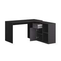 Данная модель стола-трансформера удивит и порадует своей функциональностью, так как стол может быть собран, и как прямой, и как угловой. Большая, широкая столешница стола, толщиной 22 мм, установлена с одной стороны на опору, с другой — на вместительную тумбу. Тумба располагает боковыми открытыми нишами с одной полочкой внутри каждой, и центральным отделением, состоящим из закрытой распашной дверкой нишей и выдвижного ящичка. Стол может быть собран в прямом варианте, тогда размер стола составит 203,7х60 см., или же в угловом варианте с размером 136,2х139,2 см. Универсальная сборка стола позволяет собрать его на любую сторону, что позволяет максимально комфортно интегрировать стол в интерьер Вашей комнаты. Таким образом, приобретая эту модель стола, Вы получаете стол, который по Вашему желанию готовый к трансформации.