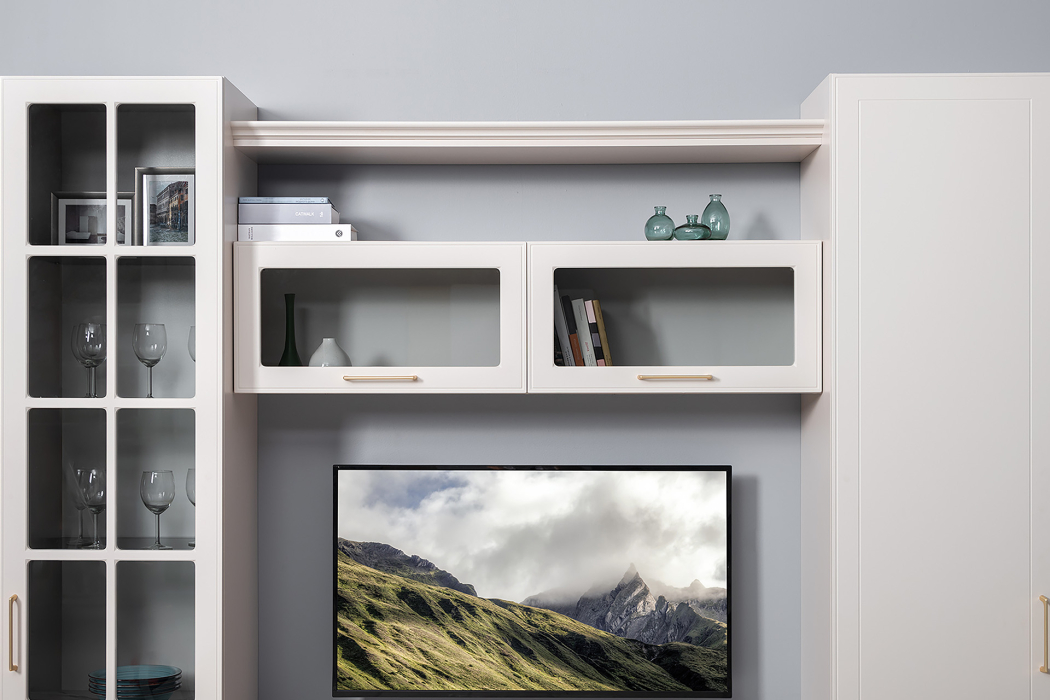 Петли с доводчиками, полное выдвижение ящиков, выдвижная штанга в шкафу для одежды и съемные полки делают использование максимально комфортным.