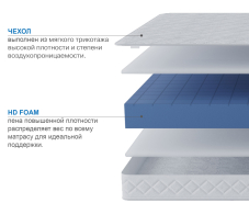 Уникальный бесклеевой и беспружинный матрас, в основе которого лежат передовые технологии умных пен. Данная пена очень прочная и долговечная, что говорит о ее высокой плотности, которая обуславливает высокую жесткость одной из сторон. Другая сторона перфорирована специальным образом, что делают ее более мягкой. Таким образом матрас подойдет для тех, кто до конца не определился с уровнем жесткости спального места, а также для тех, кто хочет иметь возможность ее изменять в процессе эксплуатации.