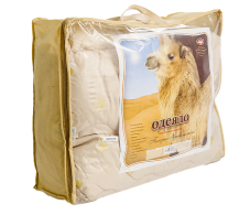 Верблюжья шерсть обладает уникальными, присущими только ей свойствами. Она прочнее и легче других видов шерсти, имеет полую структуру, благодаря чему поглощает влагу и быстро ее испаряет, тем самым поддерживая комфортный влагообмен. Натуральная верблюжья шерсть придает изделиям хороший согревающий эффект и оказывает оздоровительное воздействие на человека. Вес наполнителя 1,15 кг. Чехол из импортной ткани "Микрофибра"с рисунком "Верблюд"- 100% полиэстер, поверхностная плотность - 90 гр/м2. Упаковка - чемодан из ПВХ.