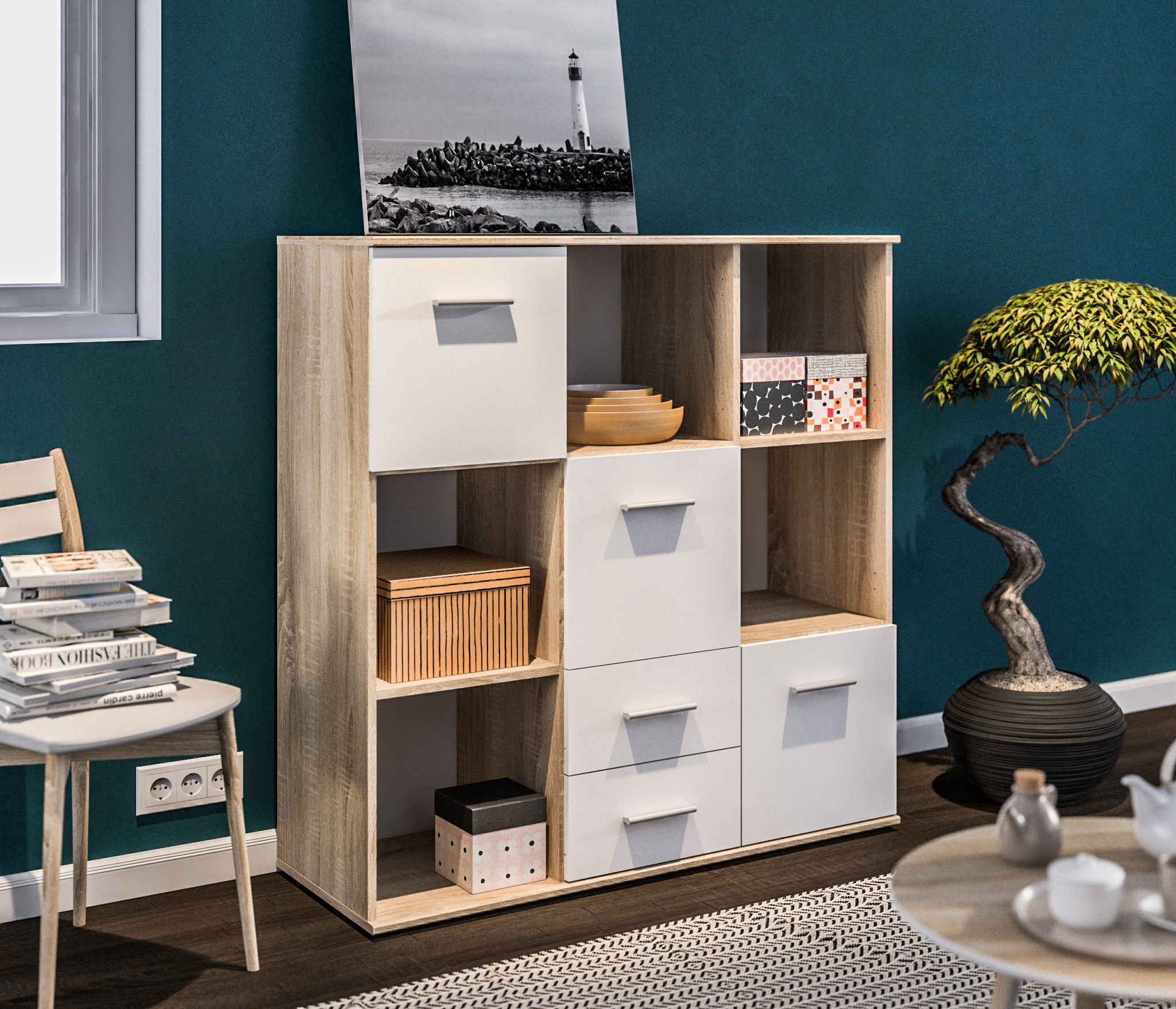 Стеллаж Мамбо СБ-3215 Дуб Сонома/Белый (Дуб Сонома/Белый)